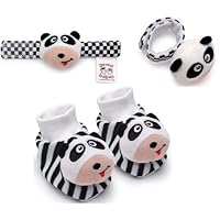 I'm a big fan of foot rattles in general and always give them to friends and co-workers with new babies. That said, I will not order these again. when they arrived, they seemed dirty and the rattle in one of the booties didn't work. I went down to the local big box store and purchased a different brand to give as a gift.Read Best Reviews of Developmental Baby Infant Gift Set - Panda Footies & Wrist Rattles Here