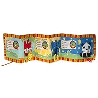 We were looking for a toy that we could place in the crib but we would still be able to use when not in the crib.It is mainly a book that comes apart into a strip that you can use attached strings so you can attach to a crib or playyard. The first section of the book you can choose if you want music, story, explore or lullaby. There is also an off and on switch. Then next section has a monkey with a ring. You can pull the monkey and depending on what you choose in the first section is what you will hear. He also has a little vibrating action as he rewinds the ring up. The next section is the elephant and you are pulling his trunk. The last section is the panda and you get him to yawn.
