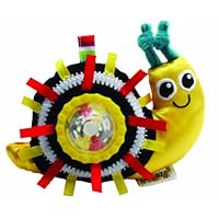 This is a great little rattle. It is brightly colored and has antenna as well as small ribbons for my little one to fiddle with. The bright colored center of the snail shell is the rattle part and it is visually stimulating. The snail itself contains a crinkly material inside so it is fun for her to squish. There is a squeaker in its head but, my little one is not strong enough to squeak it. My three year old can make it squeak, however, which the little one seems to enjoy (I think she just likes the attention of the three year old.) All and all a great toy. It seems to be a hit.The baby loved this rattle. She loved loved looking at it and playing with it. I would recommend this product.Buy Lamaze Shakin Snail Rattle Now