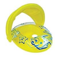 I was so excited to get this item to use this summer but when we tried it out in the pool it was a bust! I originally bought it for the shade factor. The shade will NOT stay on. It just pops off either end. We tried deflating both the shade and floatie but after adjusting the air in both several times, it still would not stay on. I wish I would have stuck with getting a different type of shade floatie. Not worth it.The canopy does not stay in place. It falls down over baby's head. Used less than five minutes. I don't feel it's safe.On-time delivery, product undamaged and very good price. Very comfortable and pretty, but is too small and the cover touch the head's baby.Read Best Reviews of Sunshade Baby Float Here