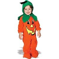 I have a petite 7 month old baby girl and this costume was too large for her. However, on a boy or an average sized girl, this would probably fit well. The costume did not come with feet, non-stick or otherwise, but it is no big deal as you can put socks on. I got lots of compliments on what a cute little pumpkin I had, so the costume was a bit hit.i bought this thinking its a cover-all onecie, otherwise i wouldn't have bought this one...their product description does say " an orange romper with nonskid soles "....but, feet not covered like it shows in the picture or as per their description...very disappointed!!
