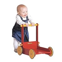 Want Moover Wooden Baby Walker with Shock Absorbing Rubber Wheels, in Red Discount?